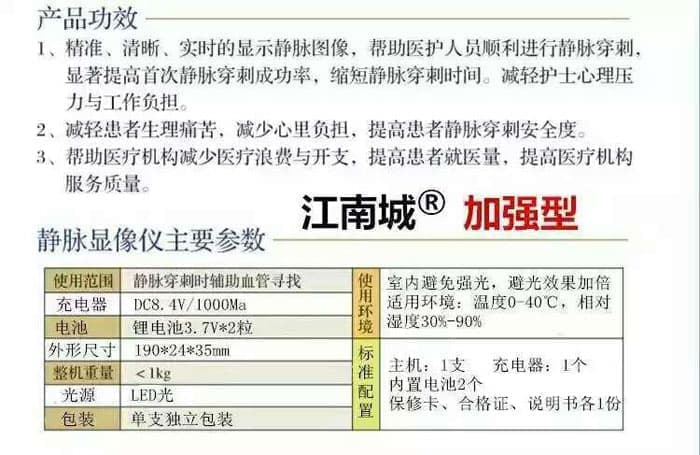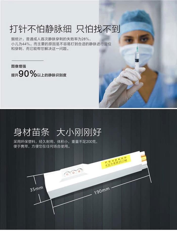 据统计:普通成人静脉穿刺的失败率为28,小儿为44。而主要的原因是不容易打到合适的静脉进行定位和穿刺,而它能帮您解决这一问题。